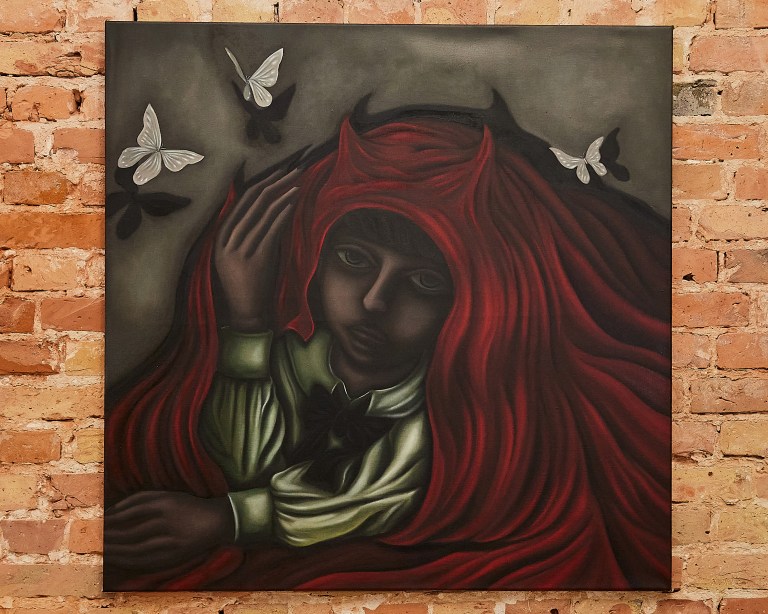 Then I shifted my focus onto fairy tales. I’ve always been a fan of Grimm’s fairy tales since I was a kid. They show happiness on the outside, but there’s often sadness hidden behind it. And the aspect of adults creating these horrifying stories for children fascinated me. Since I started painting in these styles, I started knowing and understanding myself more and more; things that are occurring to me, or the meaning of butterflies. Although I often show butterflies as symbols of love, friendship, hope and wishes, my paintings are still described as dark, and people ask me about my mental state all the time haha. But this is a form of being true to myself. There are times for everyone when they can’t be completely honest with others. For example, you can talk about everything from 1 to 100 with a therapist, but you might stop at 50 with friends. Perhaps politeness is involved in that. You don’t want to make someone sad so you hesitate. Even if they say “it’s totally fine, you can talk to me”, it’s not that easy. And painting has a role of someone I can completely become honest to, and it’s so relieving after finishing up a painting. Feels nice. When I’m painting on a canvas, it’s kind of similar to looking into a mirror, but not at myself – more like talking to someone else. My paintings speak for my heart. I find it very satisfying when people understand me through my art, and being accepted or heard is pleasurable. That’s mostly why I keep painting. I’m very sure this is the right path for me. Unlike when I was doing abstract art, there’s no lingering painful emotion. Although the memories may have been sad, there’s always hope within them. I think anyone wants to move beyond sadness. In a way opposite to fairy tales, I express the sad parts outwardly, but there’s meaning in the underlying wishes and love. That’s probably the most straightforward way to describe my art.