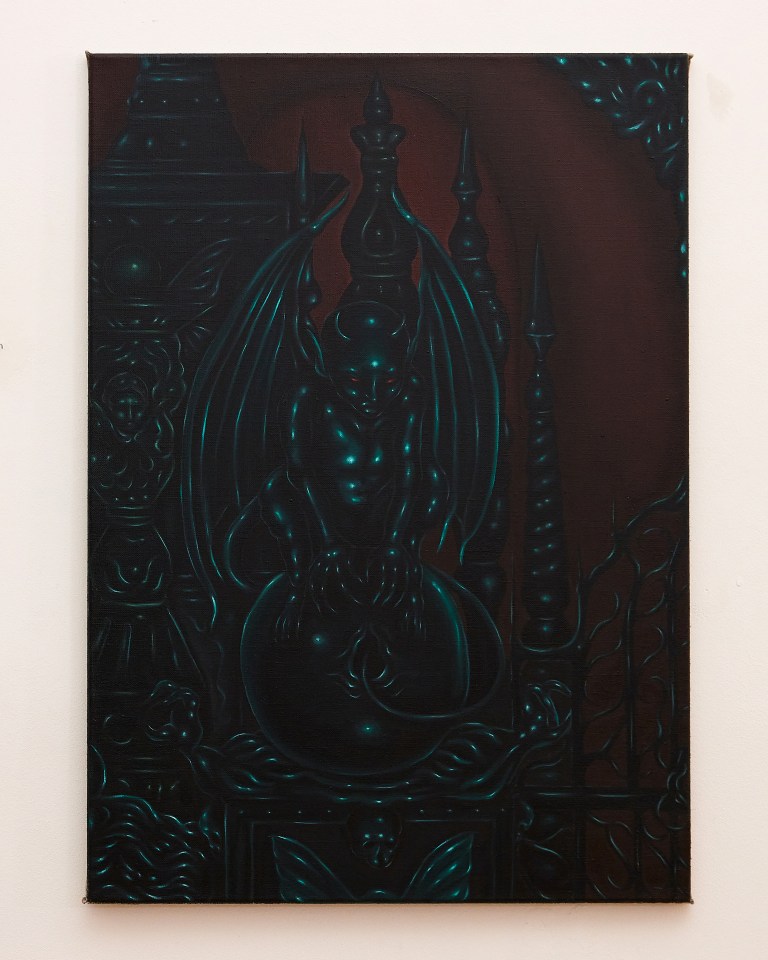 Have you heard of gargoyles? You’d see them as decorations on really old churches or castles. The buildings now have proper water drainage, but in the past, castles were kind of flat, causing water to accumulate on top. This would damage the building, so they had to create places for the water to flow, and they needed some sort of decoration to conceal them. That’s when they started using gargoyles. When I paint characters in my paintings with horns or devil-like figures, it’s not about the negative impression that people may have. Rather, I represent them as symbols of sorrow. It’s just the way everyone perceives them, being labeled that way even without their own intentions, and I used to draw them to show that. However, I stopped drawing them because people would say “That’s not good” haha.