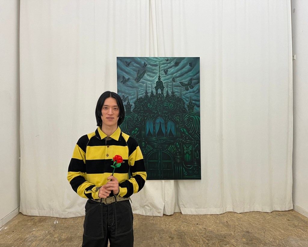 I stopped going to school during middle school, so my only option was to go to vocational school instead of high school. I chose art, but I couldn’t get into the school I wanted. I stopped drawing for a long time since then. Calling it a hobby felt embarrassing, so I started working as a vintage clothing shop staff. While working, I got to talk with many students, especially those that were studying art, feeling a bit jealous. Then at a certain point, I wanted to leave Japan, partly because of some relationship issues with people. I wanted a fresh start but had no option to return to my hometown. I wondered if there was more interesting stuff left in Tokyo. I had higher hope for the city, but it never satisfied me enough. And I just kind of decided to come to Berlin I’ve heard someone talking about. I talked to a bunch of different people, and I thought it’s cool that they’re living up to their passions. I respected them for truly enjoying things they love, without any judgment of backgrounds or careers. That’s how I was able to get back to painting again 5 to 6 years ago. Gradually, it became a little bigger and bigger. I started trying oil painting as well. If you’re an artist or creator, you know how there’s no turning back once you invest and start using expensive brushes – it becomes addictive.