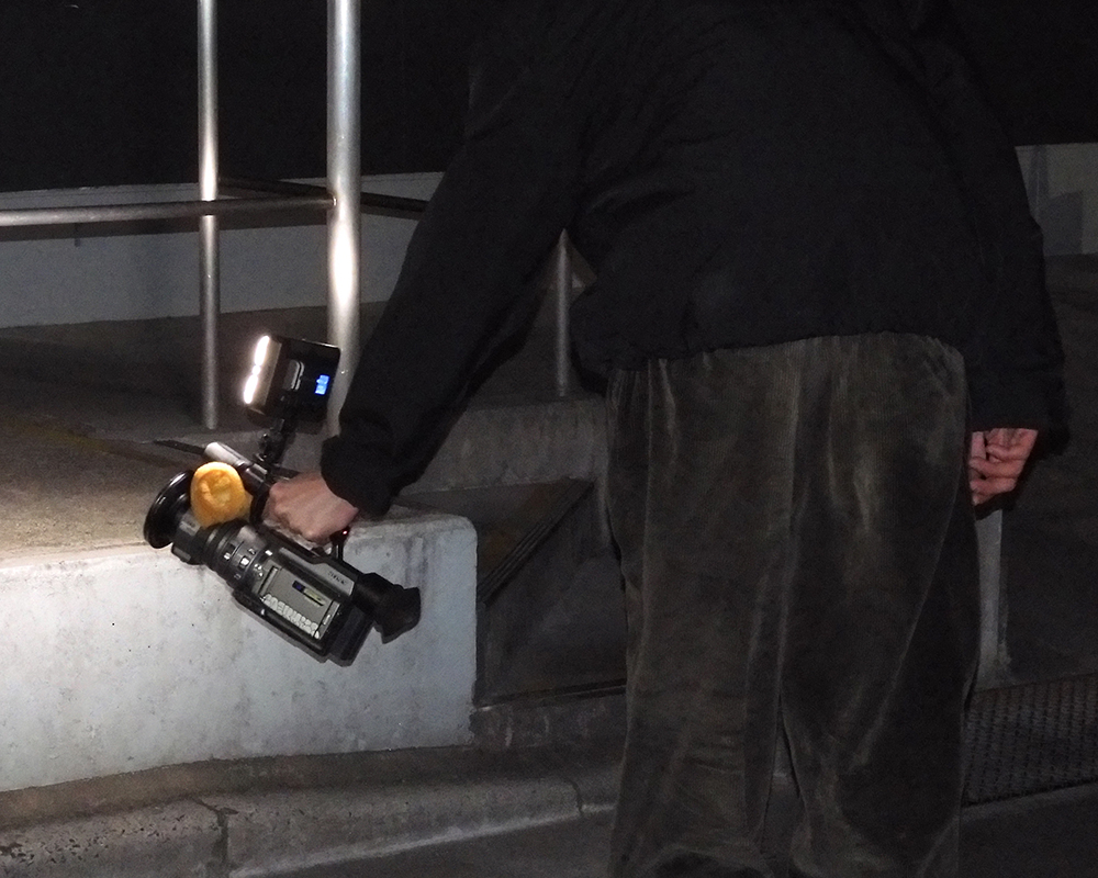 映像を見たときにその場でスケボーを見てるように撮る。例えばステアとかだったら、上から下に跳んでくところを見るパターンが多いじゃん。だからなるべく上から撮るとか。あとは歩きでもついていけるとことか追い撮りするとか。普通だったら下とかで待って落ちてきたところから合流するんだけど、階段も歩きで追えばついていけるわけじゃん。FPSのゲームみたいなイメージ結構(笑)。