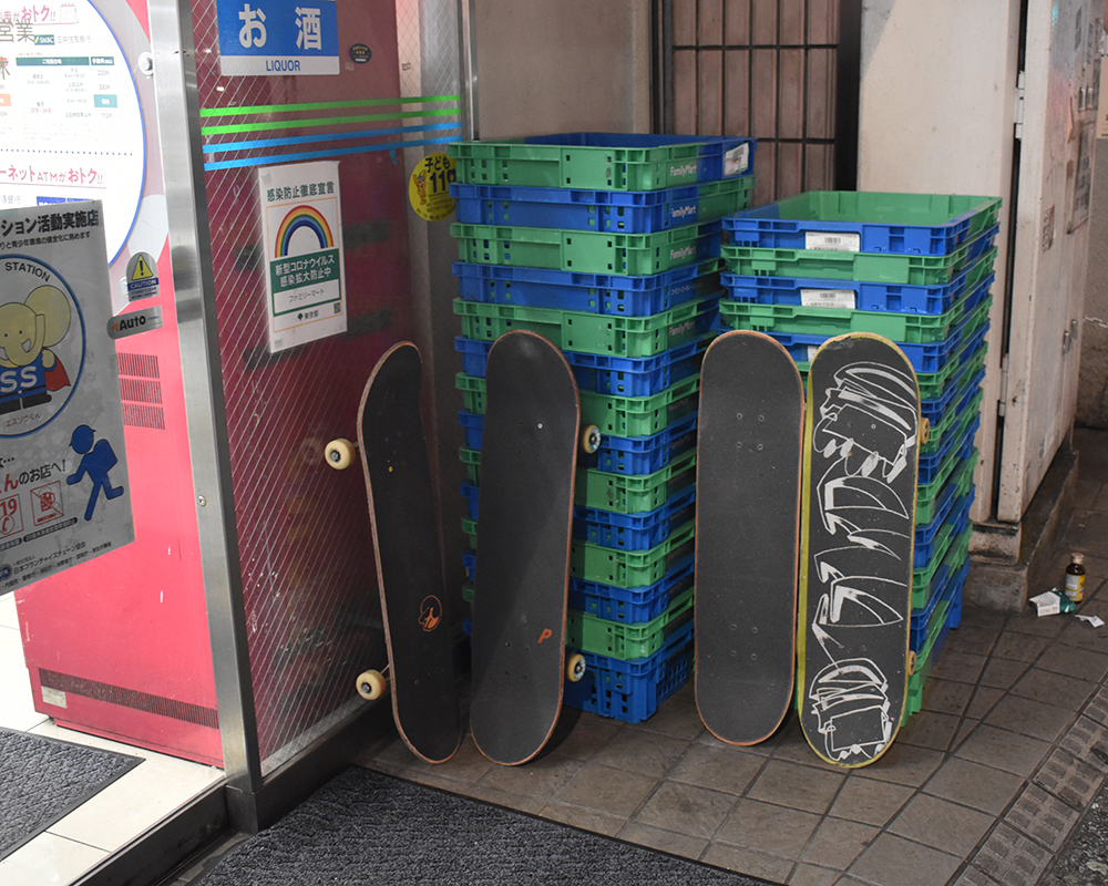 Since I was a teenager, there were several times when I was part of either graffiti or skate crews, and one of them is called Convenience which has naturally gone extinct in a good way. The crew was first called Pigsty, and was formed by me, Shunpei (who I first started skating with) and Tenma. There were about 20 skateboarders at my school but it was only the 3 of us at first who had wanted to go filming. One day Tenma came up to me with a digital camera. That was when we started filming skating. Then a few years in, we were finally able to invest in a VX. Tenma was the main filmmaker and editor at the time. Kojiro also went to the same school and it was fun. But by the time we were in high school, everyone started thinking about their future plans such as going abroad and what not. I also quit school at the time and everyone ended up in different places. Then I started skating at Tamachi a lot and spent a lot of time with the KP guys.