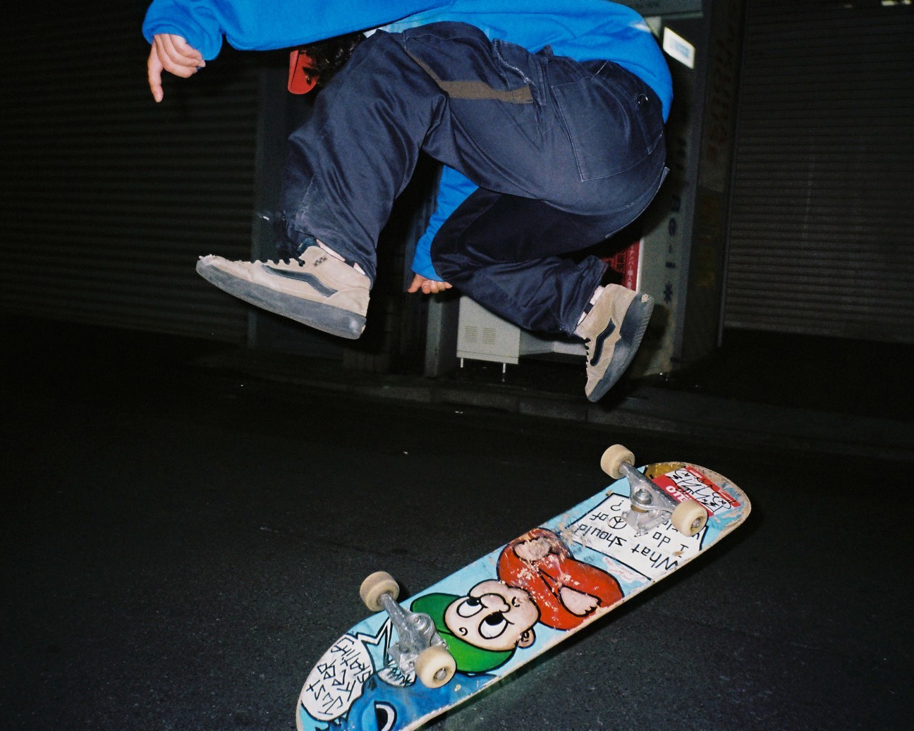 At first, I started skateboarding completely on my own and kept skating alone. The closest skate spot to my house was Chuo Park in Shinjuku, and this was during the COVID period, so there were a lot of skaters there. That’s how I started meeting the local kids. Suddenly, I had so many friends, and they were all incredibly creative – painting, making videos, taking photos.